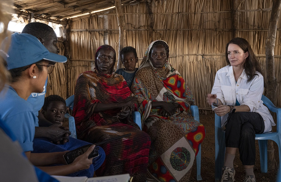 Durante su visita, Kristin Davis viajó al Centro de Tránsito de Renk y al paso fronterizo de Joda, donde se reunió con personas refugiadas sudanesas y sursudanesas retornadas que habían huido de la escalada de violencia, la inestabilidad y las violaciones de derechos humanos dentro de Sudán. Los combates, aún activos, siguen forzando cada día a miles de personas a abandonar sus hogares, muchas de ellas por segunda o tercera vez.